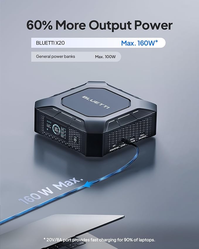 BLUETTI X20 Power Bank for Laptop | 288W 153.6Wh (12000mAh) High Capacity Portable Charger