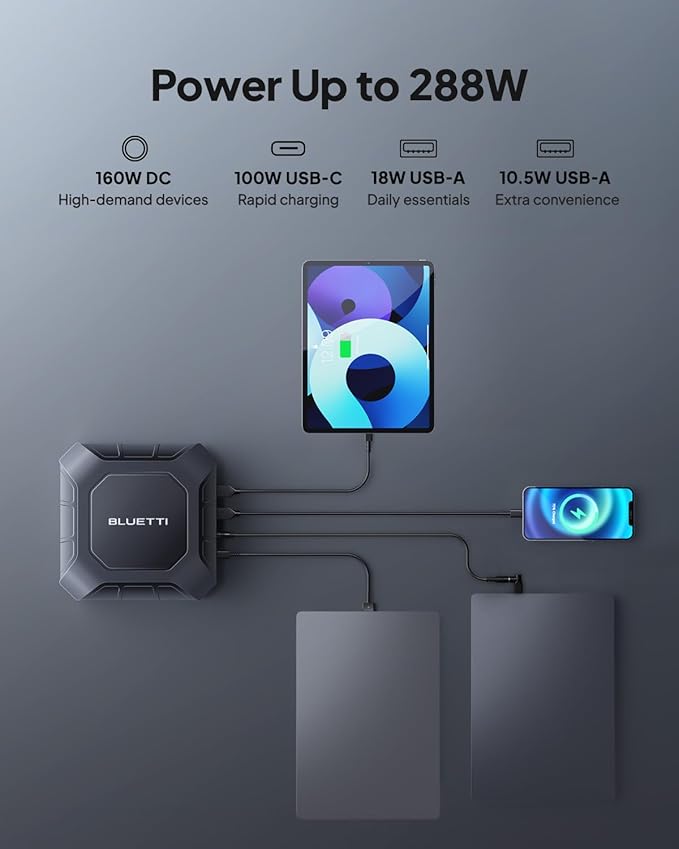 •     Bidirectional Charging: 100W USB-C port allows simultaneous charging and discharging, keeping your devices powered without interruption.